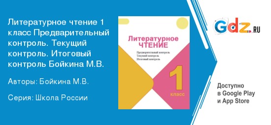 Чем ГДЗ по литературе за 1 класс Предварительный контроль. Текущий контроль. Итоговый контроль. Бойкина будет полезен ученику