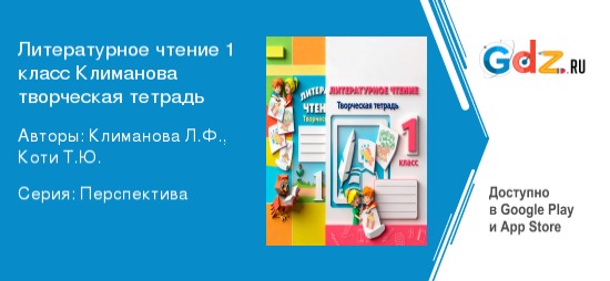 Литература является одной из важнейших школьных дисциплин в настоящее время благодаря модной тенденции на самообразование. Она сочетает в себе сразу несколько видов текста: начиная от стихотворений Лермонтова М. Ю. и заканчивая внушительной прозой, вышедшей из-под пера Толстого Л. Н. Однако мода на чтение книг не отменяет того факта, что многие школьники скептически относятся к изучению литературного искусства в школе. С одной стороны, это легкий предмет, где особо не требуется учить никаких правил и формул, а с другой, на ней задают самостоятельно изучать огромные произведения, вникать в биографии авторов и осваивать теорию. Из-за этого может сложиться впечатление, что лит-ра ничем не проще научных предметов, но это не так. Зачастую ученики получают плохие отметки исключительно из-за собственной лени. Поэтому родителям следует с самого начала приучать ребенка к чтению книг. И «ГДЗ по литературе 1 класс творческая тетрадь Климанова, Коти (Просвещение)» станет лучшим помощником в этом деле.