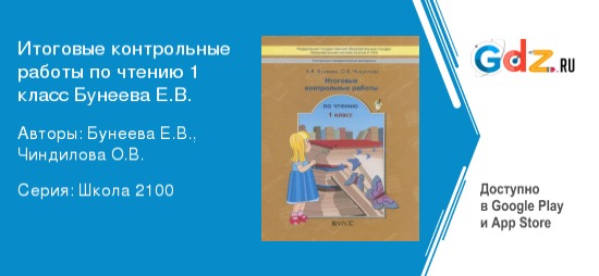 Использование ГДЗ к итоговым контрольным работам по чтению 1 класс Бунеева Е.В. помогает определить, насколько за год были усвоены ребёнком основные разделы программы, выявить уровень формирования навыков чтения. Пособие полностью соответствует всем требованиям федерального государственного образовательного стандарта начального общего образования.