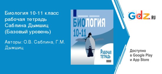 ГДЗ рабочая тетрадь по биологии за 10‐11 класс Авторы: О.В. Саблина, Г.М. Дымшиц - карманный помощник