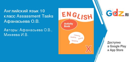 Одним из наиболее эффективных пособий, которое способствует лучшему усвоению английского языка, является ГДЗ assassment tasks по 10 класс авторы: Афанасьева О.В., Михеева И.В. Весь материал составлен с учетом способностей каждого десятиклассника.