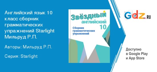 Изучение английского языка достаточно сложно, но необходимо. ГДЗ к сборнику грамматических упражнений Starlight Мильруд Р.П. поможет ребятам справиться с грамматикой английского языка. Пособие полностью соответствует всем требованиям федерального государственного образовательного стандарта и школьной программы полного среднего образования.