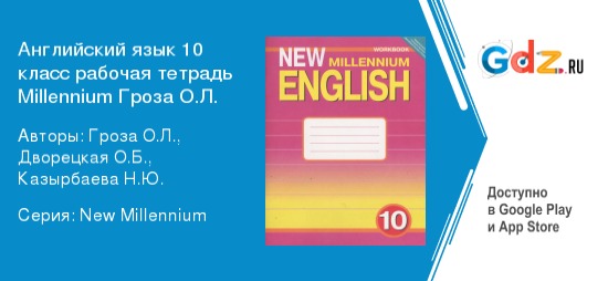 Кому еще пригодится онлайн-решебник рабочей тетради по английскому языку за 10 класс New Millenium Гроза, Дворецкая, Казырбаева