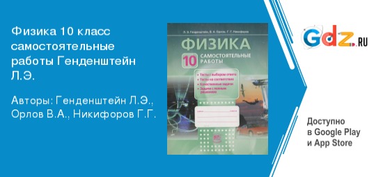 Многие ученики боятся сдавать физику, не имея полного понимания предмета. Некоторые из них сталкиваются с трудностями в изучении предмета. ГДЗ к самостоятельным работам по физике 10 класс автор Генденштейн Л.Э. поможет разобраться в сложных темах и справиться с трудной задачей. Пособие полностью соответствует всем требованиям федерального государственного образовательного стандарта полного среднего образования.