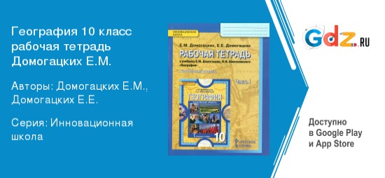 Над созданием «ГДЗ по географии рабочая тетрадь за 10 класс Авторы: Домогацких Е.М., Домогацких Е.Е. ФГОС часть 1, 2 Углубленный уровень» трудились лучшие специалисты. Они не только придерживались правил ФГОС но еще и учитывали возможный уровень подготовки ребят к школе чтобы справочник использовали и отличники и отстающие от программы школьники. Те подростки, которые стараются всегда получать хорошие отметки на уроках, также частенько сталкиваются с множеством непреодолимых в одиночку трудностей. Они совершают ошибки при выполнении заданных на дом номеров, не разбираются в теоретических вопросах и в том, как решаются учебные и творческие задания. Справочник с верными ответами всегда придет на помощь. В этом онлайн-пособии ребята найдут то, что поможет им решить все их проблемы связанные и изучением данной дисциплины.