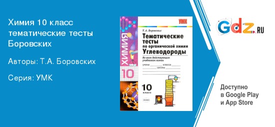 Таким образом, «ГДЗ по химии 10 класс тематические тесты Т. А. Боровских (Экзамен)» отражает почти весь курс по химии за десятый класс.