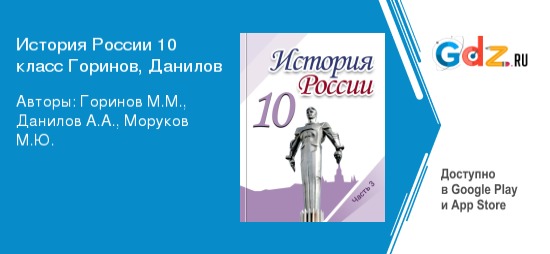 Какие темы поднимаются в готовых домашних заданиях по истории 10 класс авторов: Горинов, М. М., Данилов, А. А., Моруков, М. Ю.