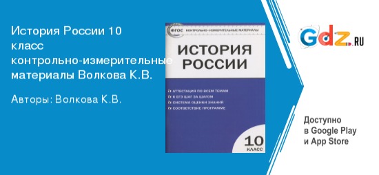 Школьный курс ГДЗ контрольно-измерительные материалы по истории России за 10 класс Автор: Волкова К.В.