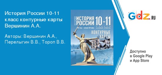 Рабочая программа ГДЗ контурные карты по истории за 10‐11 класс Авторы: Вершинин А.А., Перелыгин В.В., Тороп В.В. Базовый уровень