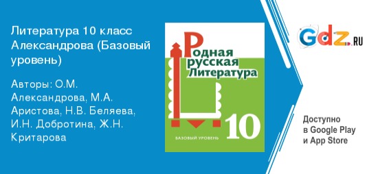 Обязательный курс ГДЗ по родной русской литературе за 10 класс Авторы: О.М. Александрова, М.А. Аристова, Н.В. Беляева, И.Н. Добротина, Ж.Н. Критарова Базовый уровень