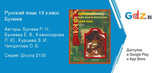 Школьная программа ГДЗ по русскому языку за 10 класс Авторы: Бунеев Р. Н., Бунеева Е. В., Комиссарова Л. Ю., Курцева З. И., Чиндилова О. В. Базовый и углубленный уровень