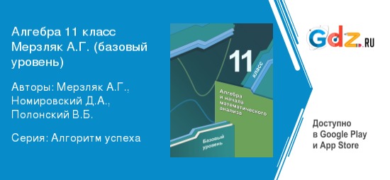 Онлайн-решебник по алгебре базовый уровень для 11 класса от Мерзляка дает возможность каждому ученику работать в любое время хоть с компьютера, хоть с смартфона, где имеется доступ к Интернету.