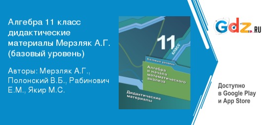 Школьная программа ГДЗ Дидактические материалы по алгебре за 11 класс Авторы: Мерзляк А.Г., Полонский В.Б., Рабинович Е.М., Якир М.С. Базовый уровень