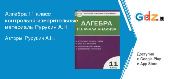 Математика для выпускников является одним из самых важных предметов. Поэтому она входит в программу ЕГЭ. ГДЗ к контрольно измерительным материалам по алгебре 11 класс автор Рурукин А.Н. может стать отличным помощником в подготовке как к уроку или контрольной работе, так и к предстоящему единому экзамену. Пособие полностью соответствует всем требованиям федерального государственного образовательного стандарта полного среднего образования.