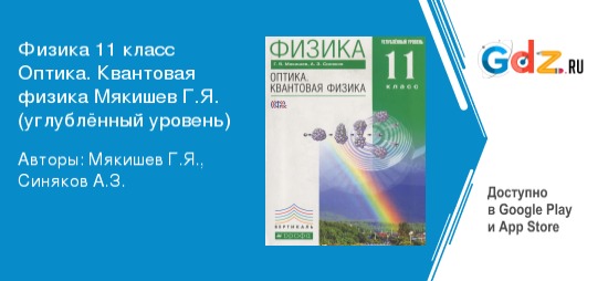 Полное соответствие требованиям Федерального государственного образовательного стандарта делает ГДЗ по физике для 11 класса Оптика Квантовая физика Мякишев углубленный уровень своевременным и полноценным помощником выпускника. Физика — один из самых сложных и увлекательных предметов старшей школы. Его знание немало способствует образовательному росту школьника:
