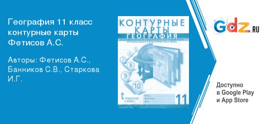 ГДЗ по географии в 11 классе играет особую роль, так как это завершающий класс в общеобразовательной школе. География в 11 классе представляет собой обобщение и систематизацию знаний, полученных учениками в течение всего периода обучения. ГДЗ к контурным картам по географии 11 класс Фетисова А.С. окажет существенную помощь в выполнении заданий по географии. Пособие полностью соответствует всем требованиям федерального государственного образовательного стандарта полного среднего образования.