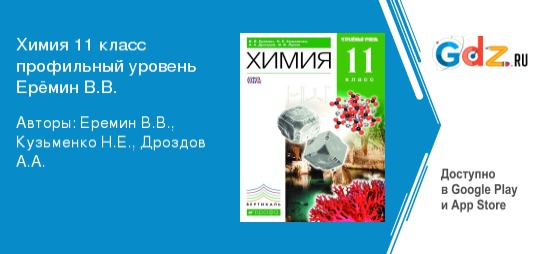 Школьная программа ГДЗ по химии за 11 класс Авторы: Еремин В.В., Кузьменко Н.Е., Дроздов А.А. Углубленный уровень