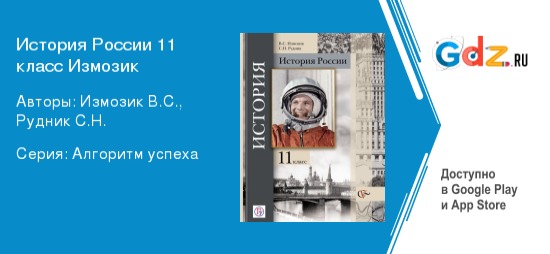 В этом году, школьники познакомятся с удивительным временем, начиная от отмены крепостного права и заканчивая нашими современными днями. Временной отрезок, сверху до низу насыщен фантастическими событиями, памятными датами, великими победами во всех направлениях и горьким привкусом войны. Благодаря величайшим достижениям и трудным решениям наших предков, прадедов, дедов, мы получили в наследство замечательную, постоянно прогрессирующую страну, которая успешно бросит вызов любым трудностям. Сегодня роль тех кульминационных вещей, слегка преуменьшается, а порой вовсе, забывается. Чтобы ученики помнили и чтили корни родного государства, образовательное учреждение, приготовило для них грандиозный сюрприз. ГДЗ по истории за 11 класс Измозик, Рудник ФГОС Базовый и углубленный уровень станет потрясающей находкой для жаждущих открыть глаза на собственное прошлое, которое заставит гордиться в настоящем и будущем.