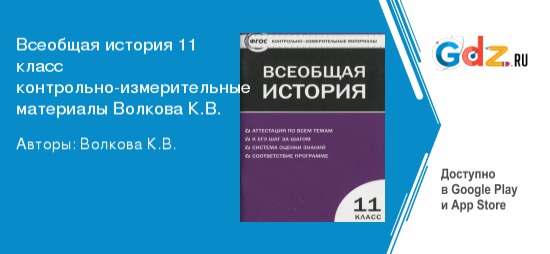 ГДЗ контрольно-измерительные материалы по всеобщей истории за 11 класс Волкова ФГОС