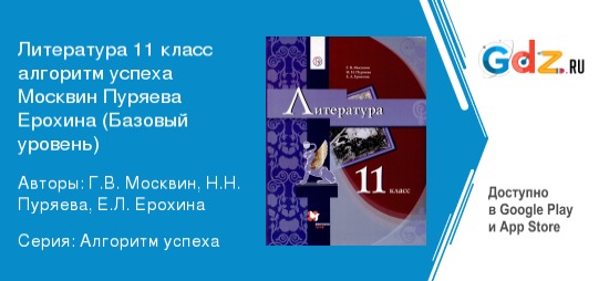 ГДЗ к учебнику алгоритм успеха по литературе за 11 класс под редакцией Москвина Г.В., Пуряевой Н.Н., Ерохиной Е.Л. базовый уровень позволяет ученикам быстро и эффективно проверять выполненные задания. Это издание содержит ответы на вопросы, упражнения и задачи по всем изучаемым произведениям, что помогает школьникам самостоятельно контролировать правильность своих ответов и исправлять ошибки. Пособие полностью соответствует всем требованиям федерального государственного образовательного стандарта полного среднего образования.