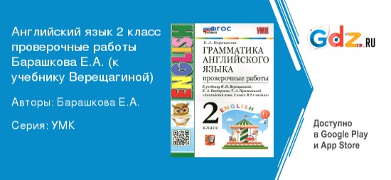 ГДЗ проверочные работы по английскому языку 2 класс Барашкова Е.А. (к учебнику Верещагиной) – материал, разработанный для учащихся второго года общеобразовательных школ. Уроки легки для освоения, однако из-за разнообразных обстоятельств ребёнок может иногда не поспевать за программой. В таких ситуациях лучше всего обращаться к помощи ГДЗ. Готовые ответы на домашние задания по рабочей тетради помогают проконтролировать знания школьника, улучшить его успеваемость, отметки за текущий период, а также повысить средний балл. Онлайн-решебник – куда более экономичный вариант, чем найм репетиторов.