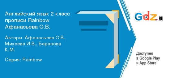 Обучение английскому языку во 2 классе начинается с основных элементов языка, таких как алфавит, произношение звуков, грамматика и лексика. Ученики учатся говорить, слушать, читать и писать на английском языке. ГДЗ к прописям по английскому языку 2 класс Rainbow Афанасьевой О.В. помогает ученикам проверить свои ответы и решения на задания из прописей и сверить их с правильными ответами. Пособие полностью соответствует всем требованиям федерального государственного образовательного стандарта начального общего образования.