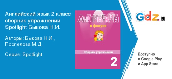 Если учащиеся будут добросовестно выполнять все задания учителя, то обучение должно протекать вполне споро и без проблем. А вот, если какая-либо тема все же останется недопонятой, то тут и могут возникнуть затруднения. Решить их относительно просто всегда поможет решебник по английскому для сборника упражнений Spotlight за 2 класс (авторы: Быкова Н. И., Поспелова М. Д.), в котором можно найти ответы на все текущие упражнения.