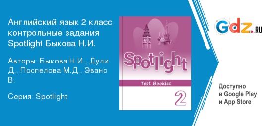 «ГДЗ контрольные задания Spotlight по английскому языку за 2 класс Н. Быкова, Д. Дули, В. Эванс, М. Поспелова ФГОС (Просвещение)» - именно то, что нужно для освоения фундаментальных знаний