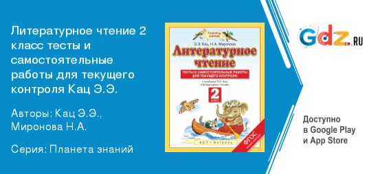 ГДЗ по литературному чтению 2 класс тесты и самостоятельные работы Кац — это качественная поддержка учеников, которым на втором году обучения предстоит не только читать художественные произведения, но и заниматься их анализом, писать проверочные работы.