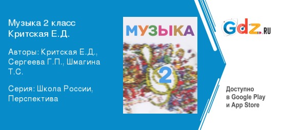 Использование в учебном процессе ГДЗ по музыке 2 класс автор Критская Е.Д., способствует более эффективному усвоению знаний, полученных на уроках. Пособие полностью соответствует федерального государственного образовательного стандарта начального общего образования.
