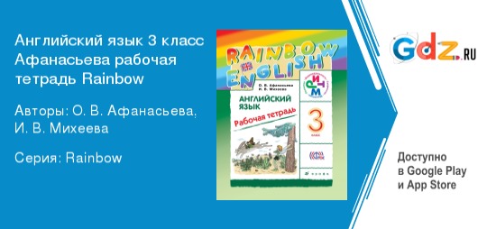 При сложностях в выполнении уроков, усвоении школьного материала или просто для подготовки к тестам следует обратиться к ГДЗ по английскому языку рабочая тетрадь Rainbow за 3 класс Афанасьева.
