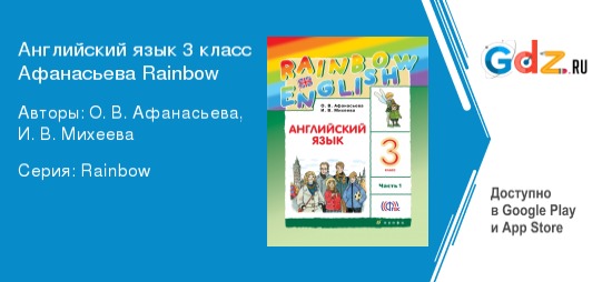 В последнее время английский язык пользуется все большей популярностью. Многие школьники выбирают его в качестве первого иностранного. Изучение этого наречия открывает перед учеником большие возможности во взрослой жизни, в приобретении профессии и познании мира, ведь не нужно прибегать к помощи переводчика. В третьем классе изучение а/я приобретает более широкие масштабы, увеличивается запас слов, появляются сложные правила грамматики. Освоить все это более эффективно помогут «ГДЗ по английскому языку 3 класс Rainbow Афанасьева, Михеева (Дрофа)».