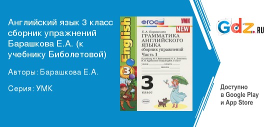 Школьники добьются желаемого результата на уроках английского в команде с информативным онлайн-сборником верных ответов – «ГДЗ сборник упражнений к учебнику Биболетовой по английскому языку за 3 класс Барашкова Е.А. (Экзамен)». Издание отражает содержание дидактического дополнения к учебнику, содержит информацию по всем номерам упражнений.