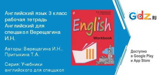 Английский язык в 3 классе требует от ребёнка много внимания, усидчивости и терпения. Каждый урок – это возможность узнать что-то новое, научиться понимать английский язык, понять, как и где его применяют. Но с другой стороны это и большой труд, который требует от ученика много сил и времени. В этом случае приходит на помощь ГДЗ к рабочей тетради по английскому языку 3 класс для спецшкол автор Верещагина И.Н. Пособие полностью соответствует всем требованиям федерального государственного образовательного стандарта и учебной программы начального образования.
