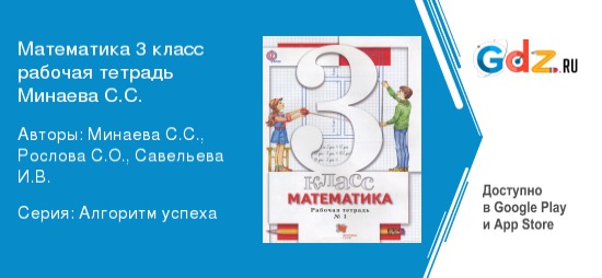 Как готовое домашнее задание может помочь и где его найти? Решебник содержит верные ответы, решение на любой номер. Можно легко проработать любой тип задач, чтобы потом они не вызывали затруднение. Найти подобное пособие можно у нас - мы предоставляем огромную базу в режиме онлайн, конкретнее – ГДЗ рабочая тетрадь по математике за 3 класс Минаева, Рослова ФГОС часть 1, 2.
