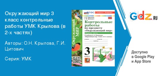 ГДЗ Контрольные работы по окружающему миру за 3 класс Крылова, Цитович часть 1, 2 ФГОС