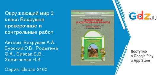 «ГДЗ по окружающему миру 3 класс проверочные и контрольные работы Вахрушев А. А., Бурский О. В., Родыгина О. А., Сизова Е. В., Харитонова Н. В. (Баласс)» доступен в режиме онлайн со всех современных устройств круглосуточно и абсолютно бесплатно – понадобится лишь выход в интернет.