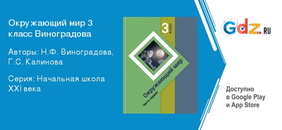 Основой социальных и естественных наук - представляет предмет "окружающий мир". Главной целью данного предмета, научить третьеклассника рациональному восприятию мира и правильно осмысливать личный опыт. Вникать во все аспекты такого интересного предмета, как окружающий мир ребята начинают с первых учебных дней. Поначалу легкая дисциплина оказывается довольно сложной для многих третьеклассников. Теоретический материал о природных явлениях включает в себя множество терминов и определений. Выполнение домашнего задания и подготовка к занятиям отнимает у школьников слишком много времени. При этом ребята упорно трудятся над освоением основных предметов, таких как русский язык и математика. Успешно справиться со всеми требованиями программы и закончить год с высокими показателями ученикам поможет «ГДЗ по окружающему миру за 3 класс Виноградова».