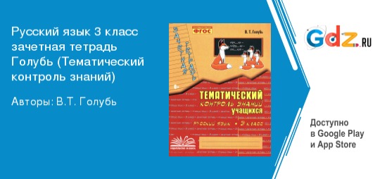ГДЗ к зачётной тетради по русскому языку 3 класса В. Т. Голубь (Тематический контроль знаний) отлично подойдёт для проверки знаний, самоконтроля и подготовки к контрольным работам. Пособие полностью соответствует всем требованиям федерального государственного образовательного стандарта начального общего образования.