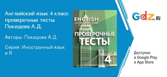 ГДЗ: готовые ответы по английскому языку Проверочные тесты за 4 класс, решебник Покидова, Иностранный язык и Я ФГОС онлайн решения на GDZ.RU.