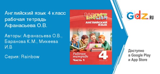 Рабочая программа ГДЗ рабочая тетрадь по английскому языку за 4 класс Авторы: Афанасьева О.В., Баранова К.М., Михеева И.В. часть 1, 2 Rainbow и Dialogue with English