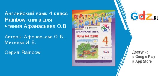 Описание ГДЗ по английскому языку книга для чтения Rainbow 4 класс Афанасьева