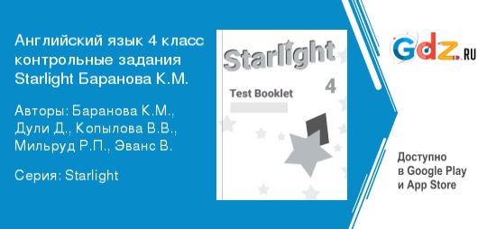 Что имеется в ГДЗ по английскому языку к контрольным заданиям Starlight для 4 класса Барановой (углубленный уровень)