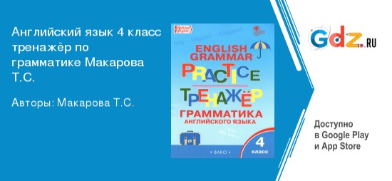 ГДЗ к тренажёру по грамматике английского языка 4 класс Т.С. Макаровой является ценным дополнением к образовательному процессу, помогающему эффективно осваивать английский язык. Пособие полностью соответствует всем требованиям федерального государственного образовательного стандарта начального общего образования.