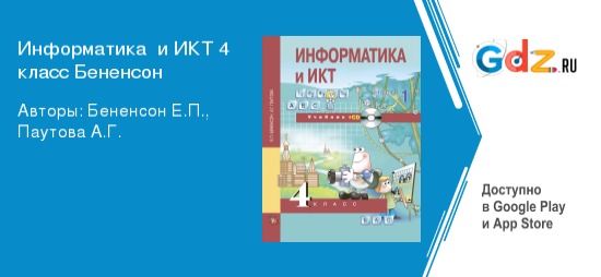 Вашему вниманию предлагается наш замечательный сервис, где можно отыскать уникальные ГДЗ по информатике и ИКТ за 4 класс Бененсон. Они помогут учащемуся с любым уровнем изначальных знаний, даже тем, кто на уроках часто отвлекается на разговоры или телефон. Конечно, обучающимся на указанной ступени образования очень нелегко, ведь совсем скоро их ожидает переход в среднее звено, где обстановка резко изменится. Ведь будет уже не один давно знакомый учитель, а разные по всем предметам. Также кабинеты будут непривычными, и нужно будет ходить и искать их. Министерство образования даже подумывает устроить обязательные экзамены для перехода на пятый этап обучения. Поэтому нужно быть готовым ко всему и не упускать ничего важного. Для этого существует вспомогательная справочная литература, о которой мы сейчас расскажем подробнее.