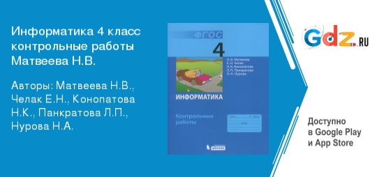 Цели решебника контрольные работы по информатике за 4 класс авторы: Матвеева Н.В., Челак Е.Н., Конопатова Н.К., Панкратова Л.П., Нурова Н.А.