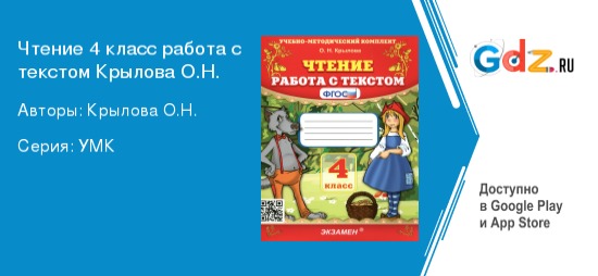 Учебная программа ГДЗ работа с текстом по литературе за 4 класс Автор: Крылова О.Н.