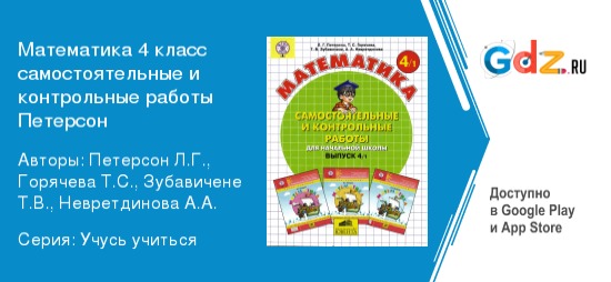 Математика является самым сложными предметом для всех школьников. Неудивительно, ведь для получения хороших и отличных оценок требуется усердие, старание и хорошая память. Зато она очень положительно влияет на развитие ребенка. Она тренирует вычислительные способности, формирует логическое мышление и развивает мозг в целом. Знания этой царицы наук очень пригодятся любому человеку, так как на сегодняшний день немало профессий требуют наличие таких навыков. К тому же, и в житейских ситуациях она очень помогает. Вас никто не сможет обмануть с процентом по кредиту или с обычной скидкой в магазине. Сложность материала, зачастую, создает множество проблем у учащегося, ведь у него очень много и домашнего задания, где же взять столько времени, чтобы все успеть? Помочь справиться с возникающими трудностями в полной мере может ГДЗ самостоятельные и контрольные работы по математике за 4 класс Петерсон.
