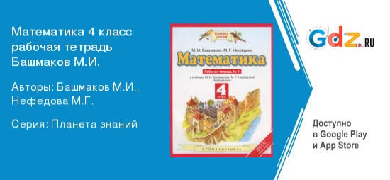 ГДЗ по математике рабочая тетрадь за 4 класс Башмаков часть 1, 2 – это возможность быстро проверить себя и исправить ошибки. Математика – царица наук. На ней строится изучение таких дисциплин, как химия, физика или геометрия. Сложно представить себе мир без этой точной науки.