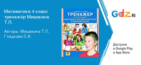 ГДЗ тренажёр: подготовка к итоговой аттестации в начальной школе по математике за 4 класс Мишакина, Гладкова — это пособие, с которым можно повысить успеваемость, приобрести полезные знания на любом этапе обучения и получить удовольствие от выполнения заданного на дом.